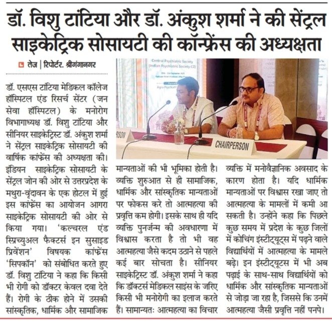 Dr. Vishu Tantia, Head of the Psychiatry Department at Dr. S.S. Tantia Medical College, Hospital & Research Centre (Jan Sewa Hospital), and Senior Psychiatrist Dr. Ankush Sharma presided over the annual conference of the Central Psychiatric Society.