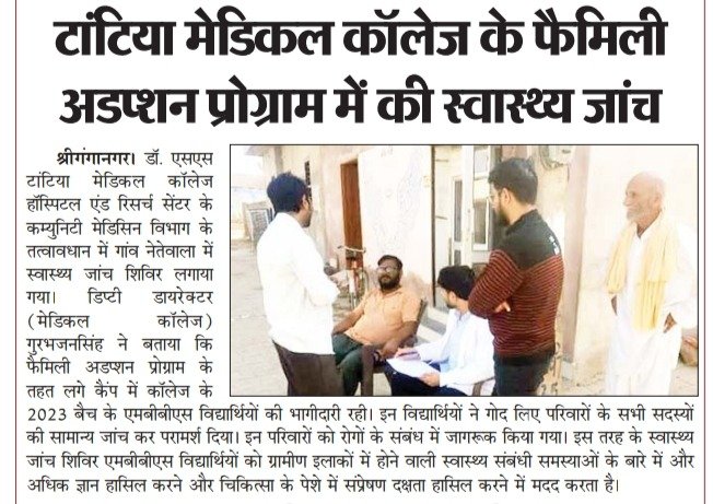 Under the supervision of the Department of Community Medicine at Dr. S.S. Tantia Medical College, Hospital and Research Centre, a health check-up camp was organized in the village of Netewala.