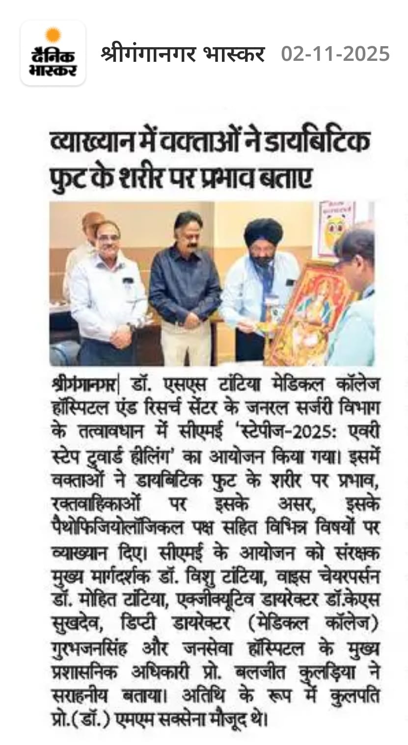 A Continuing Medical Education (CME) session titled "Stepij 2025: Every Step Toward Healing" was organized under the General Surgery Department of Dr. SS Tantia Medical College Hospital and Research Center.